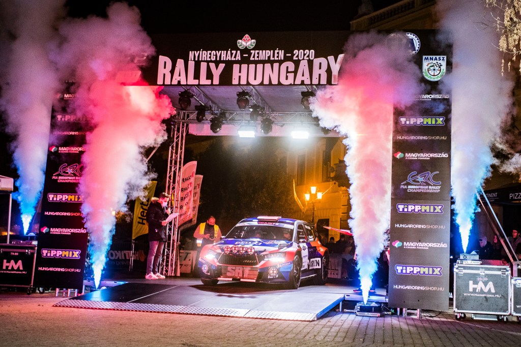La cuarta ronda del FIA European Rally Championship comenzó con una corta superespecial nocturna en el circuito de Rabócsiring. Los Skoda Fabia Rally2 Evo dominaron en el deslizante trazado y ocuparon las tres primeras posiciones de la clasificación, con los polacos Marczyk-Gospodarczyk comandando el triplete de la firma checa. Mikkelsen-Floene firmaron el segundo mejor registro en su vuelta al certamen, concluyendo justo por delante de Solberg-Johnston.
