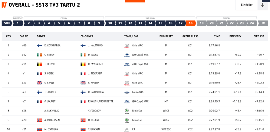 Habían advertido a sus rivales al término de la etapa de ayer: «lo puedo hacer mejor que esto», en alusión a la actuación que le situó al frente de la tabla tras el pinchazo de Ott Tänak-Martin Järveoja, y no gastaron demasiado tiempo para corroborarlo, arrancando la jornada sabatina con un scratch que fulminó a unos Craig Breen-Paul Nagle que ya marchan a 50.7″ de los sensacionales Kalle Rovanperä-Jonne Halttunen. Por su parte, los ídolos locales protagonizaron un recital a pesar de luchar por nada en estos momentos. Ya se lamentarán de sus excesos de fogosidad…