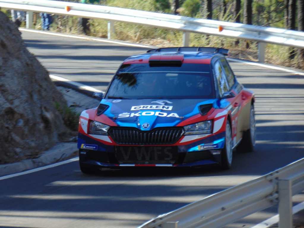 La pareja que portará el número 1 este fin de semana sufrió un ligero percance en la zona de meta. Los polacos Miko Marczyk-Szymon Gospodarczyk dañaron la dirección de su Škoda Fabia Rally2 Evo a mediodía, incidente que solventaron con rapidez los mecánicos del Orlen Team, devolviendo a los suyos a la carretera escasos minutos después. No era este el inicio deseado en su segunda visita al archipiélago, máxime cuando sus rivales en la lucha por la plata continental, los españoles Efrén Llarena-Sara Fernández, completaron un día libre de errores con el Škoda Fabia Rally2 Evo.