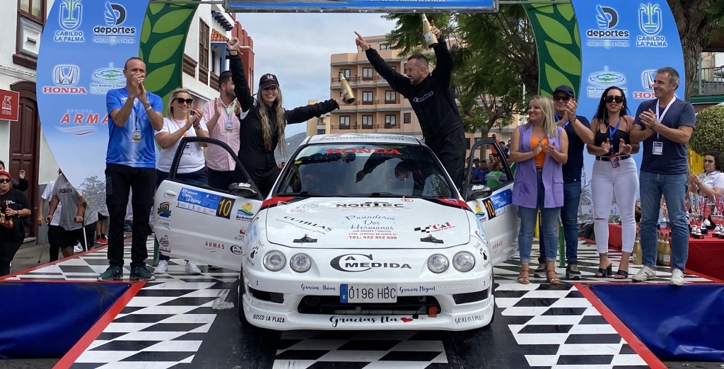 La dupla del Honda Integra Type-R logra su primera victoria absoluta en el 14º Rallysprint Cielo de La Palma, tercera cita del Campeonato Insular de Asfalto. Los líderes nocturnos aguantaron con éxito la presión a la que fueron sometidos por parte de Antonio Jesús Sánchez-Rusbel Pérez durante las seis mangas diurnas. Los ganadores no mostraron fisuras y se sobrepusieron a su inexperiencia en estas situaciones. El binomio del Mitsubishi Lancer Evo IX, aunque lo intentó en cada kilómetro, se contenta con la medalla de plata. Jorge Rodríguez-Javier Pérez completan el cuadro de honor.