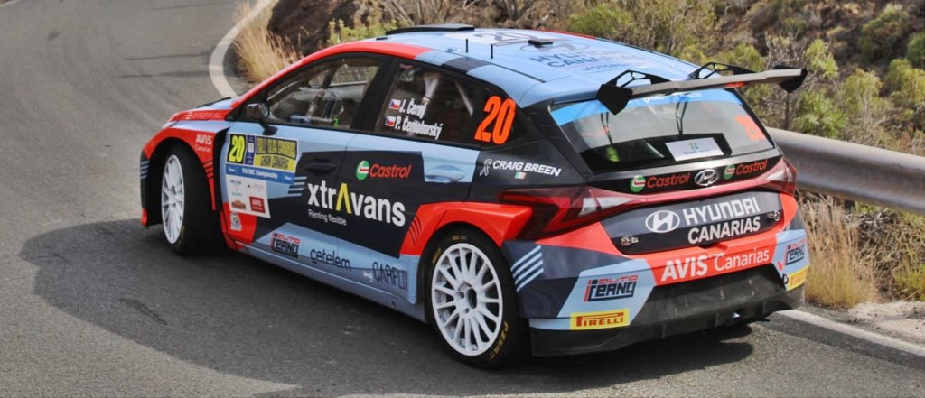Jan Cerný y Petr Cernohorský devuelven al equipo Hyundai Canarias Motorsport al peldaño más alto del podio en la prueba más prestigiosa del ‘Mundialito’. La dupla checa sobrevivió en la primera posición a las complejidades de un sábado marcado por la imprevisible meteorología. Las condiciones fueron tan cambiantes que los ganadores apostaron por realizar una mezcla de compuestos en cada uno de los bucles. Superando varios sustos por el camino, completaron el ‘Islas Canarias’ en la plaza más cotizada.