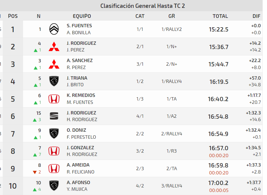 El piloto de Candelaria lidera el 48º Rallye La Palma Isla Bonita al término de la etapa del viernes, compuesta por dos pasadas al tramo de ‘Las Breñas-Mazo’. A los mandos del Citroën C3 Rally2 de Sports&You Canarias y con el lanzaroteño Ariday Bonilla a las notas, el tinerfeño comenzará la jornada del sábado con una ventaja de casi quince segundos sobre los siguientes clasificados, los locales Jorge Rodríguez y Javier Pérez. Víctor Abreu y Luis Alberto Rodríguez pierden sus opciones al triunfo con una salida de carretera en el segundo tramo. Los hombres del Skoda Fabia R5 no sufrieron daños físicos en el accidente.
