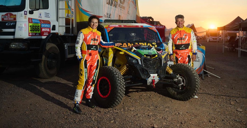 Pedro Peñate y Christine Giampaoli, los deportistas de Canarias que participan en la cuadragésimo sexta edición de la competición más exigente del planeta, ya entablan contacto con las desérticas pistas de Arabia Saudí. El de Valsequillo, a los mandos de un Can-Am Maverick XRS Turbo y copilotado por la catalana Rosa Romero, afronta su tercera aventura en la categoría de Prototipos Ligeros. La embajadora de Tenerife, por su parte, debuta en la cita de raid por excelencia con otro Can-Am Maverick XRS Turbo, pero encuadrado en Side-by-Side. El argentino Ricardo Adrián Torlaschi le acompaña en el habitáculo.