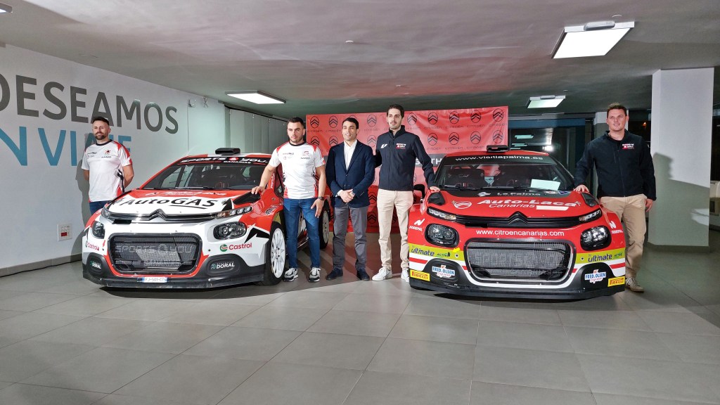 El vigente campeón del ‘Mundialito’ y el ganador de los dos campeonatos tinerfeños de rallies desvelaron sus nuevas rotulaciones para la temporada que ya empieza en las instalaciones de Citroën en Miller Bajo. Albano Castillo, director gerente de la marca francesa en la provincia de Las Palmas, recibió a dos de los pilotos que representarán a la firma del Domingo Alonso Group en el 40º Rallye Villa de Santa Brígida de este fin de semana. El de La Palma manifiesta que «se siente bastante bien llevando el número uno». El de Candelaria, por su parte, tratará de «hacerlo lo mejor posible» para acercarse a los favoritos.