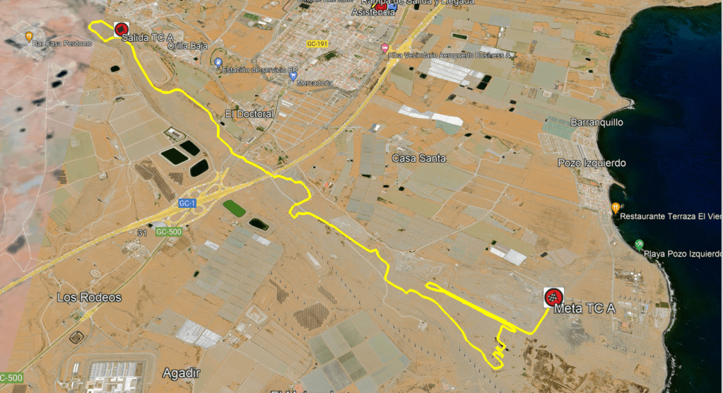Los municipios de Santa Lucía y San Bartolomé de Tirajana acogen este fin de semana la primera ronda del novedoso Campeonato de Canarias de Tierra. Veintiséis equipos participarán en la cita organizada por Club Deportivo Evesport. El recorrido elaborado para la vigésima edición de la prueba grancanaria pasará por las localidades de Pozo Izquierdo y Bahía Feliz, repitiéndose casi en su totalidad el itinerario del año pasado. En esta pieza encontrarás toda la información para seguir este fin de semana de competición al detalle, desde los puntos de las salidas y metas hasta las previsiones meteorológicas. ¿Lloverá?