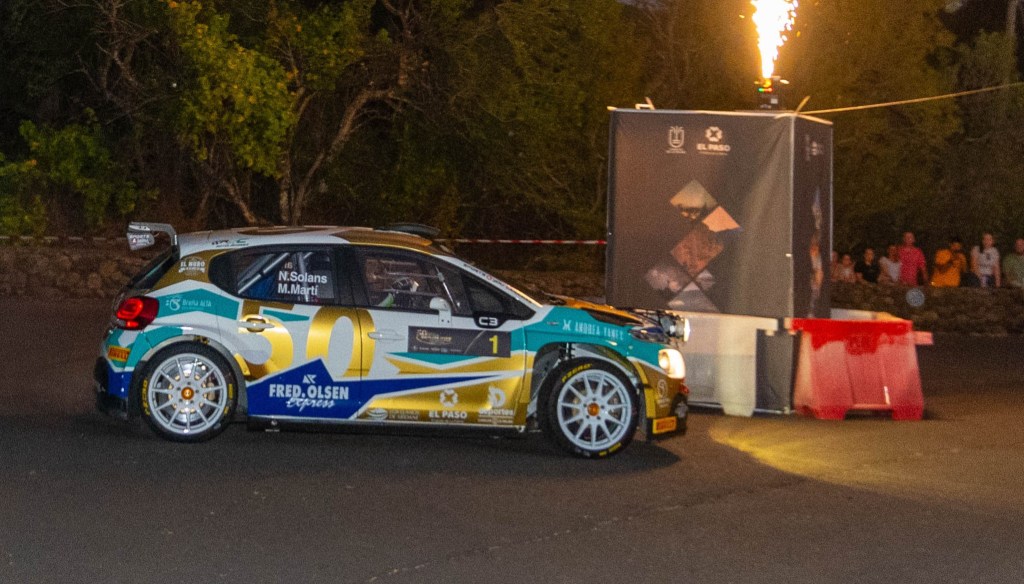 Nil Solans y Marc Martí comienzan el 50º Rally Senderos de La Palma con el liderato bajo el brazo. La dupla mundialista, invitada a las bodas de oro de la prueba palmera por parte de El Muro Racing, fijó el registro de referencia en la superespecial de ‘Las Canales de El Paso’, pero con sus más inmediatos perseguidores, Armide Martín y Pedro Domínguez, a solo dos décimas de segundo. Ambos equipos confirman así su condición de favoritos a la victoria.