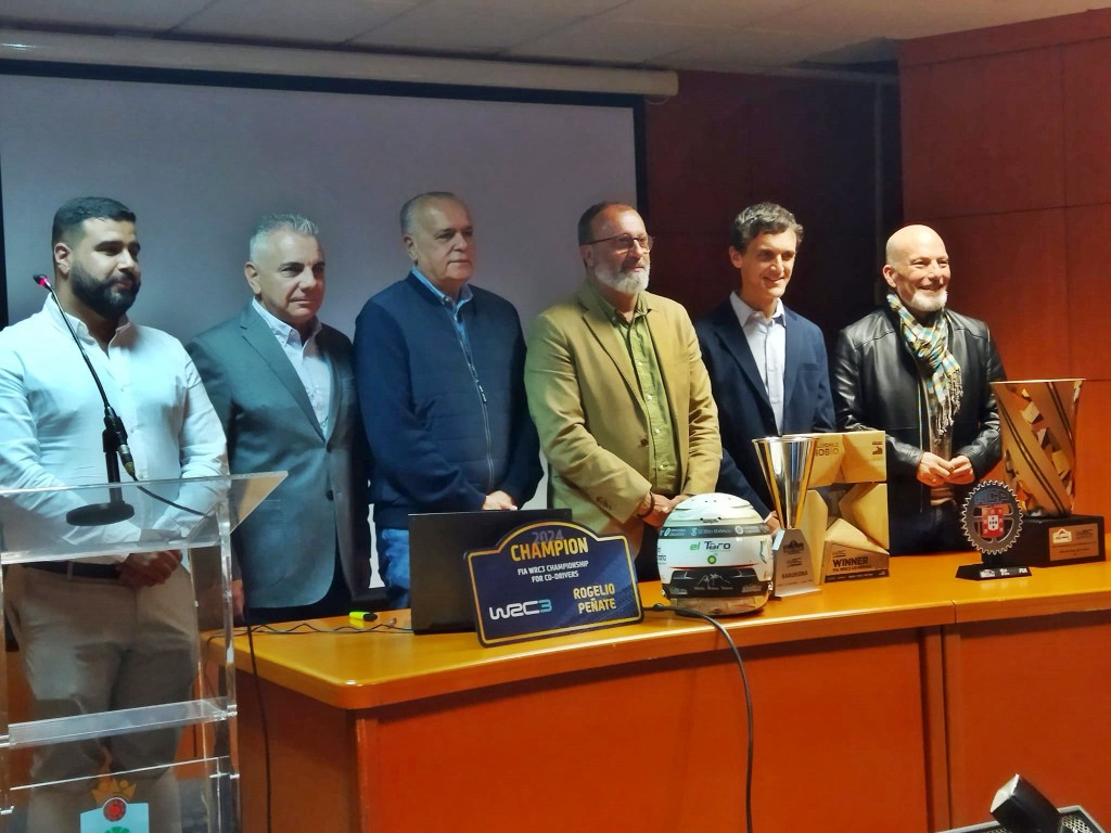 Representantes institucionales, dirigentes de las compañías que le apoyan y el colectivo de aficionados arroparon a Peñate en el Salón Nelson Mandela del recinto localizado en la zona sureste de la isla de Gran Canaria. Rogelio expuso en este acto de celebración los diferentes premios que fue acumulando en esta temporada 2024. El único que faltó fue el de campeón del mundo, que retornó al cuartel general de la FIA porque aún no tenía su nombre grabado.