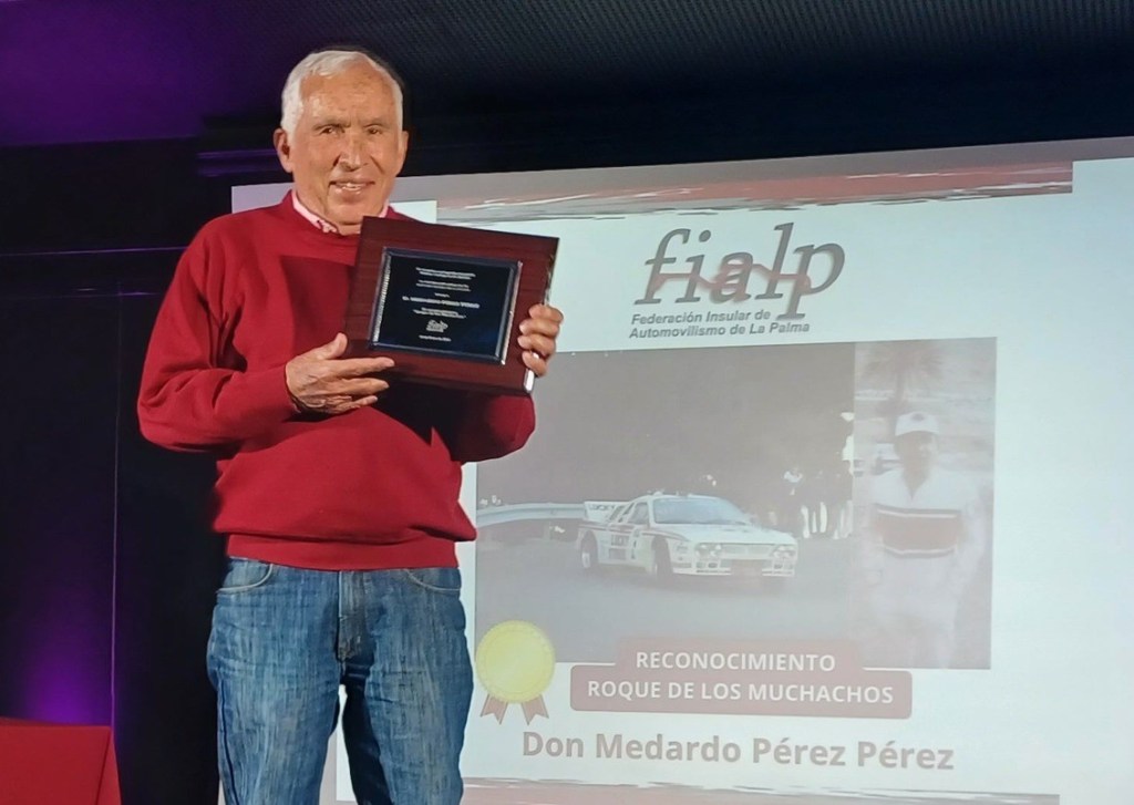Medardo Pérez recibió el primer premio ‘Roque de los Muchachos’ en la gala de campeones de la Federación Interinsular de Automovilismo de La Palma (FIALP). Esta nueva distinción, que pretende reconocer a figuras importantes en la historia del deporte en la Isla, fue la de mayor prestigio en la ceremonia realizada en la Casa de la Cultura de Los Llanos de Aridane. El hombre de las 101 victorias incorpora así un nuevo galardón en su extensísima colección.