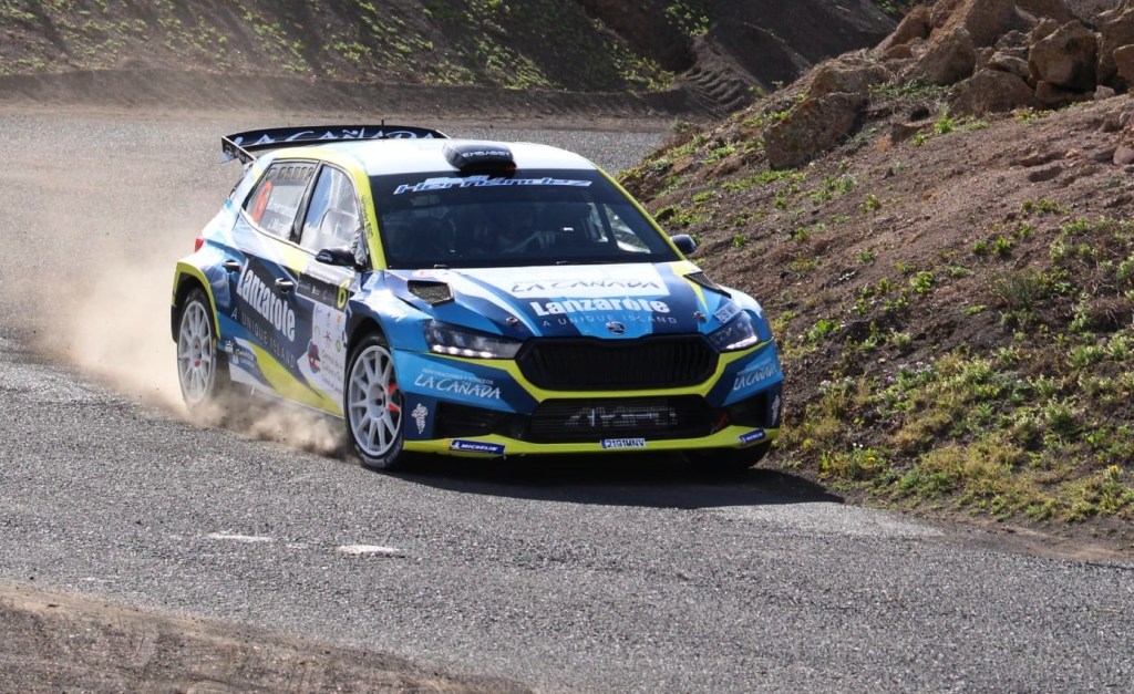 Raúl Hernández asciende a la segunda posición del 46º Rallye Isla de Lanzarote. A bordo de un Škoda Fabia RS Rally2 de MAPO Motorsport, el joven conejero permanece en la pelea por la victoria. Al término de la primera pasada por ‘La Candelaria-San Bartolomé’, tan solo 1.7″ son los que le separan de un liderato que sigue en manos de Yeray Lemes. El defensor de la corona del ‘Mundialito’ repitió scratch sobre su Citroën C3 Rally2, fortaleciendo así su lugar.