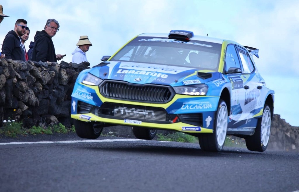 El joven piloto del Škoda Fabia RS Rally2 termina el primer bucle del 46º Rallye Isla de Lanzarote con un scratch que le confirma como candidato al triunfo. «Todavía nos falta bastante con el coche», comenta el conejero. El vigente campeón de Canarias sigue en lo más alto de la clasificación. Enrique Cruz, tercero, pierde terreno con los dos locales.