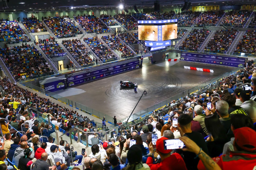 Los representantes de M-Sport Ford fueron los encargados de abrir carretera ante los miles de aficionados y, por consiguiente, los que empezaron a dejar goma en la pista que utiliza el Club Baloncesto Gran Canaria. Josh McErlean, que marcha décimo por la tabla, disfrutó con el calor de los aficionados locales. Grégoire Munster, fuera del top diez tras su excursión en ‘Arucas-Firgas-Teror’, quedó totalmente anonadado al sufrir subviraje en vez de sobreviraje.