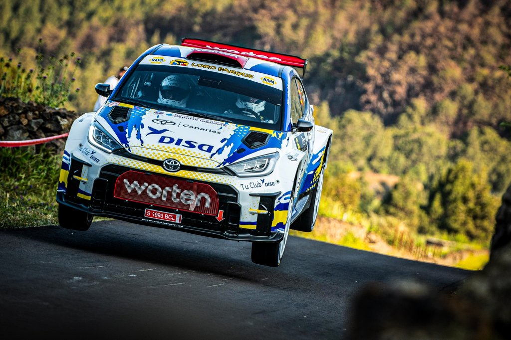 El lagunero da un golpe sobre la mesa en los 6.55 kilómetros de la especial de ‘Tigalate-Villa de Mazo’. Al volante del Toyota GR Yaris Rally2 del Copi Sport, consigue su primer scratch del fin de semana y acorta a 4.6″ el colchón del ruso en la clasificación general. Yeray Lemes, tercero a 9.8″ del líder del Campeonato de Canarias de Rallies de Asfalto.