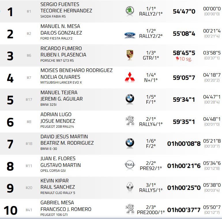 El de Škoda Canarias Motorsport deshace la igualada que mantenía con Enrique Cruz en el primer lugar del Campeonato de Tenerife de Rallies y se confirma como líder solitario del certamen. Manolo Mesa logra su mejor resultado al volante del Ford Fiesta Rally2 de Copi Sport. Ricardo Fumero, a pesar de varias incidencias, consigue la tercera posición.
