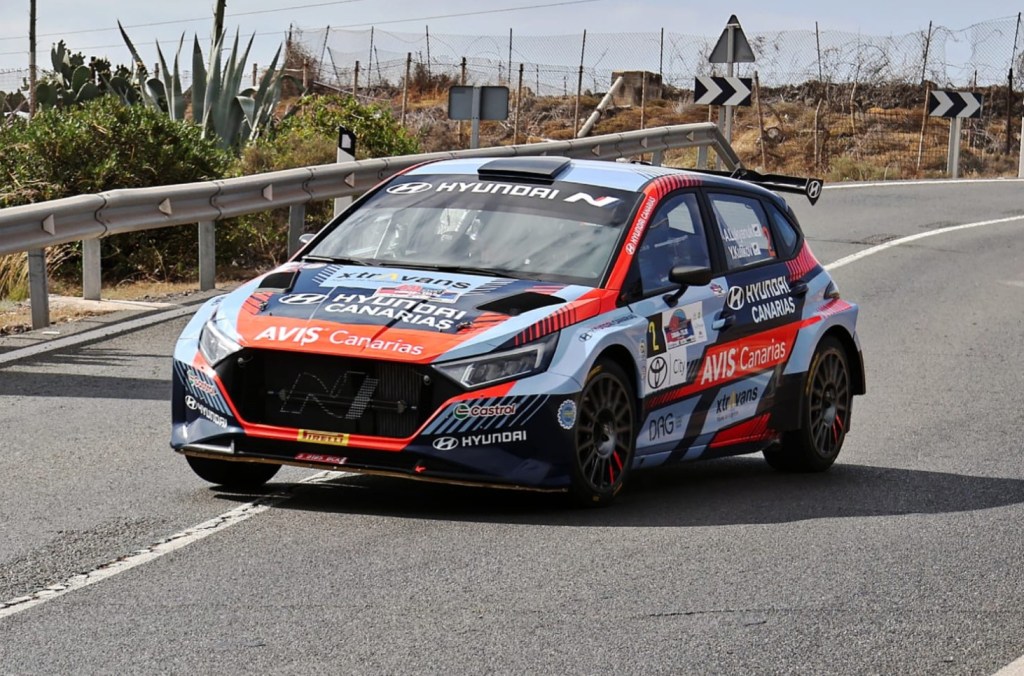 El ruso, a pesar de mantener su descontento con el Hyundai i20 N Rally2 Step 2, firma el mejor crono en la primera pasada por ‘Ingenio-Telde’. Recorta cinco décimas a Enrique Cruz y supera por cuatro al conejero en el cómputo global del ‘Ciudad de Telde’. El duelo de la cuarta posición se intensifica entre los tinerfeños Fernando Cruz y Sergio Fuentes.