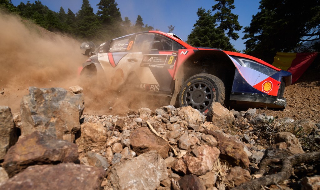 A los mandos de su Hyundai i20 N Rally1, el #8 ha volado en el bucle matinal de la segunda etapa del Acrópolis Rally de Grecia. En la primera especial del día metió 6.4″ a un Sébastien Ogier que no tenido capacidad de respuesta ante el empuje del líder. Y es que justo después de ese correctivo, el galo recibió uno más serio, de 10.0″ en ‘Karoutes’. Solo amortiguó esos dos golpes con la décima que recuperó en ‘Inohori’. Demasiado poco para alterarle el pulso.