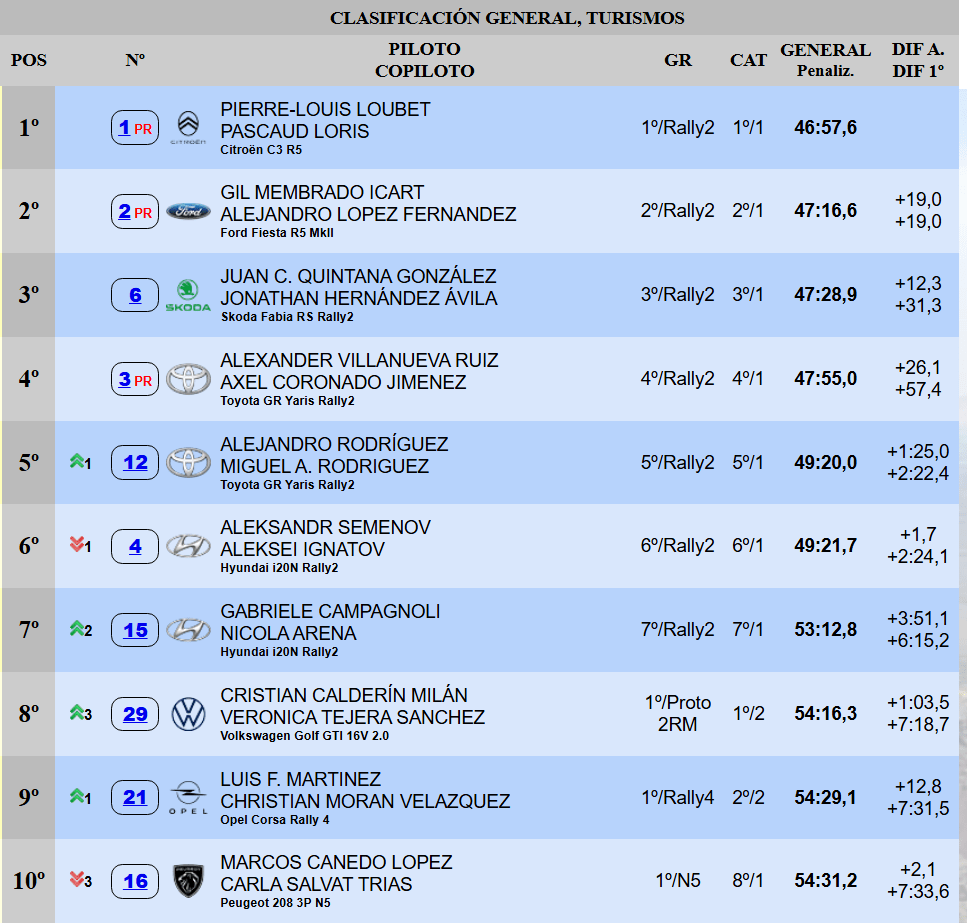 El joven conejero aprovecha la ausencia de presión en la cita de su isla para imponer un ritmo imposible de seguir para los pilotos que se disputan los sitios de privilegio. Por los 20.46 kilómetros de ‘Yaiza-Tías’ endosa 10.5″ al francés, que mantiene el control sobre Gil Membrado. El catalán termina exhausto por las altas temperaturas dentro del coche.