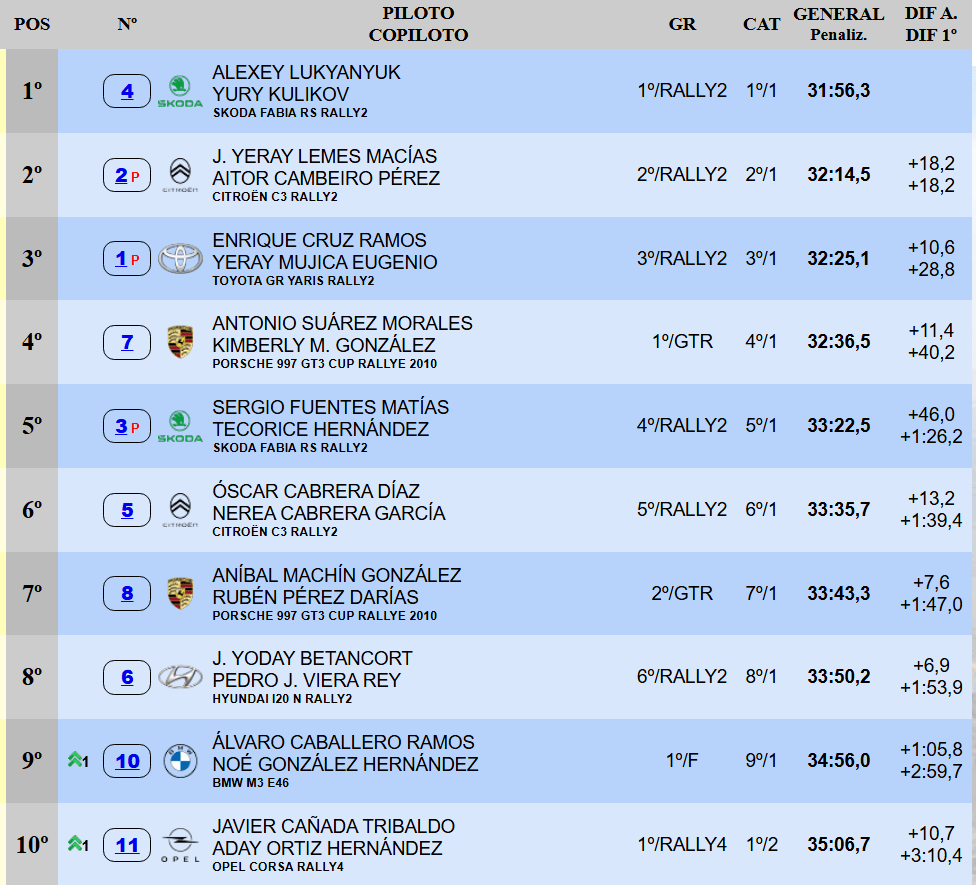 Unos veinte kilómetros le separan de la que sería su primera victoria fuera de la isla de Gran Canaria… y de erigirse como el líder de un Campeonato de Canarias de Rallies sobre Asfalto (CCRA) el que quiere dinamitar una estadística histórica, la que dice que solo los canarios lo han conquistado. Yeray Lemes y Enrique Cruz intentarán impedírselo, aunque ambos tienen una ardua labor si Lukyanuk mantiene el ritmo que está exhibiendo por las pistas conejeras.