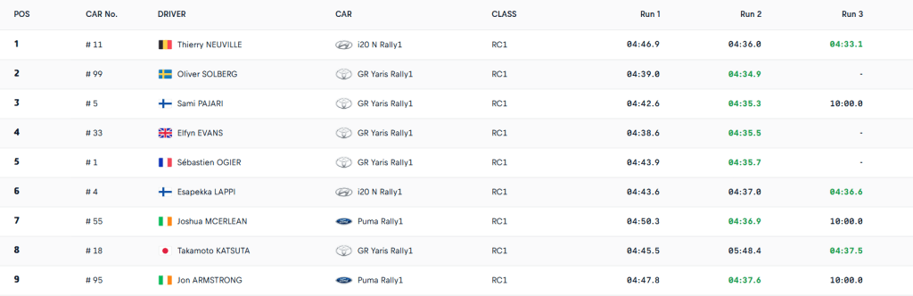 Sébastien Ogier, un doble vencedor de esta carismática ronda, instaló su Toyota en el quinto lugar. El francés no descarta que se vean diferencias notables desde los compases iniciales. Esapekka Lappi, de nuevo en el tercer Hyundai, compara el ‘Safari’ con comprar un número de lotería. «Será muy salvaje este año», avisa. El #4 fue sexto, mientras que Josh McErlean, Takomoto Katsuta, Jon Armstrong y Adrien Fourmaux completaron el top ten, en ese orden.